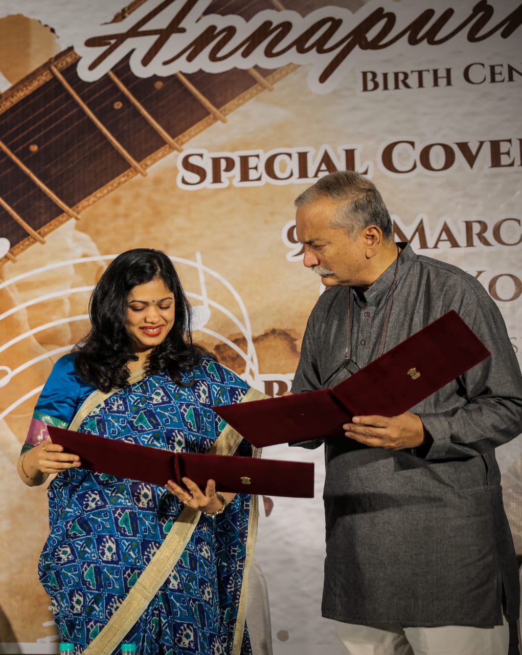 On the first day, Pandit Milind Raikar (violin), Vidushi Subhra Guha (vocals), on the second day Pandit Shantanu Bhattacharyya (vocals), Pandit Basant Kabra (sarod), on the third day Pandit Rajendra Prasanna and Ritesh Prasanna (flute), Vidushi Ashwini Bhide Deshpande (vocals) – filled the conference with souful l melody. And on March 9, 2026, the “Special Cover” was released by the India Post on the birth centenary of Annapurna Devi, in the presence of distinguished guests at GPO, Kolkata. This special honor by the India Post just a day after International Women’s Day, added another dimension to this centenary celebration. On behalf of the organization, Nityanand Haldipur said, “This honor by the India Post has added a new dimension to this initiative.”